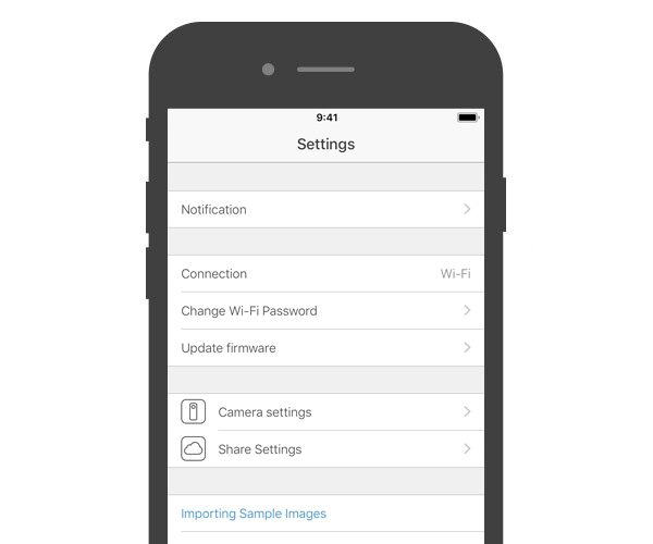 Kurulan akıllı telefon uygulamasını başlatın. [Wi-Fi şifre değiştirme] ögesini çalıştırabilir ya da [Transfer yöntemi] ve [Uyku modu] değişikliği yapabilirsiniz.