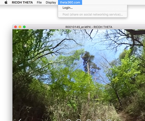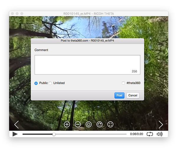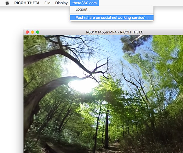 Menüde [theta360.com] - [Post (share on social networking service)] (Gönder (sosyal ağ hizmetine paylaş)) seçimini yapın.