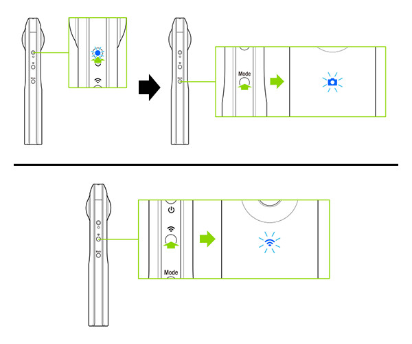 4. Kablosuz lambası mavi yanarsa, kamera akıllı telefona bağlanır.