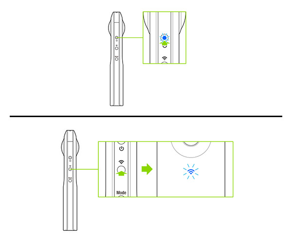 4. Kablosuz lambası mavi yanarsa, kamera akıllı telefona bağlanır.