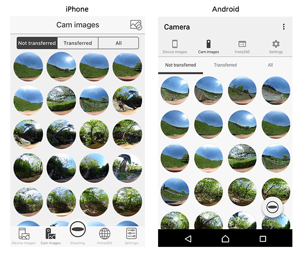 Akıllı telefon uygulamasını başlatma "RICOH THETA"